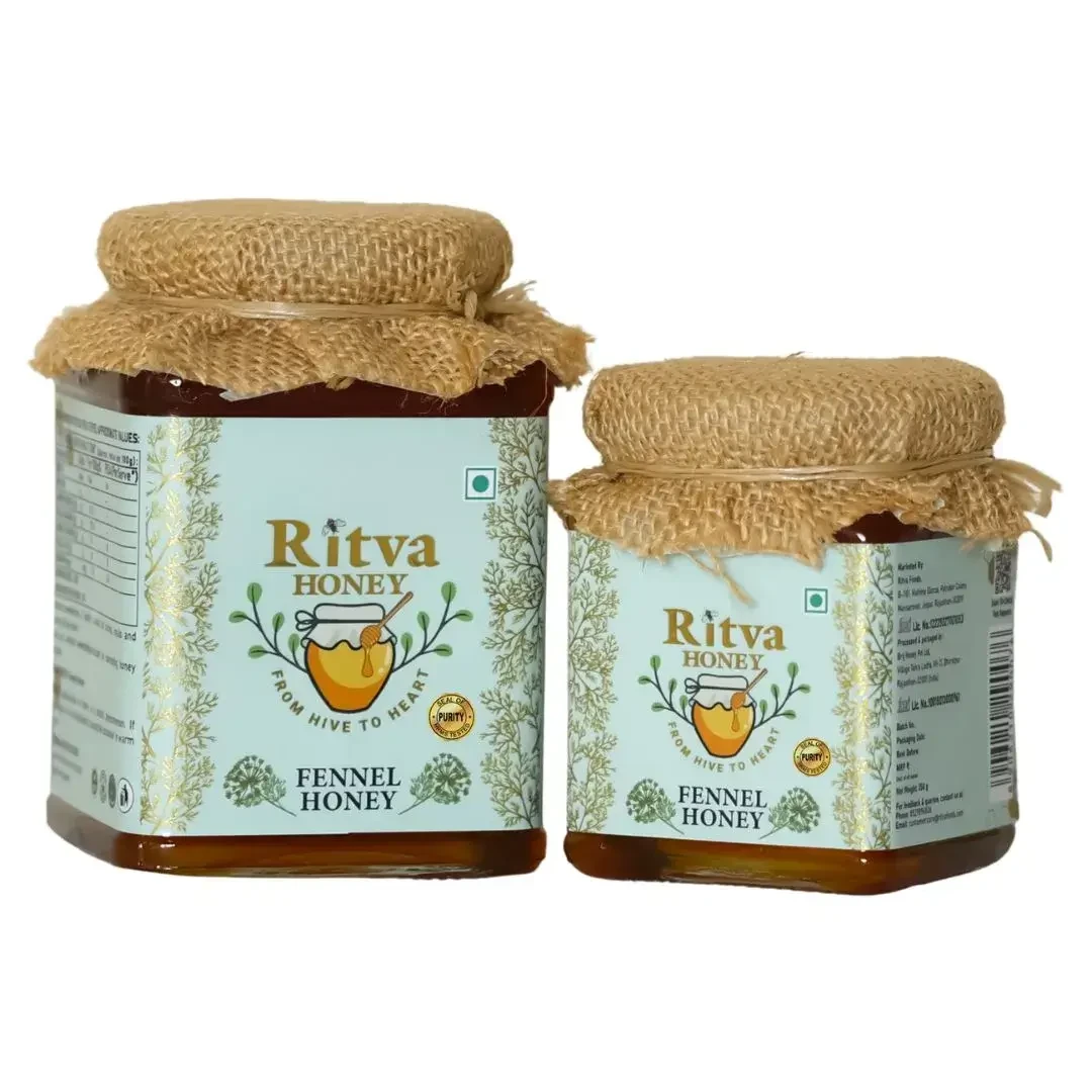 Indulge in the delicate sweetness of Ritva Fennel Honey, crafted from the nectar of blooming fennel (saunf) flowers. This golden honey carries a mild, refreshing aroma with a hint of licorice flavor, making it as delightful as it is nourishing.Known for its cooling and digestive properties, Fennel Honey helps soothe the stomach, ease bloating, and promote better metabolism.