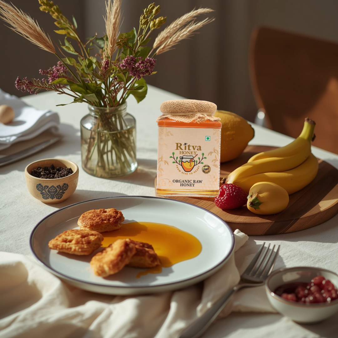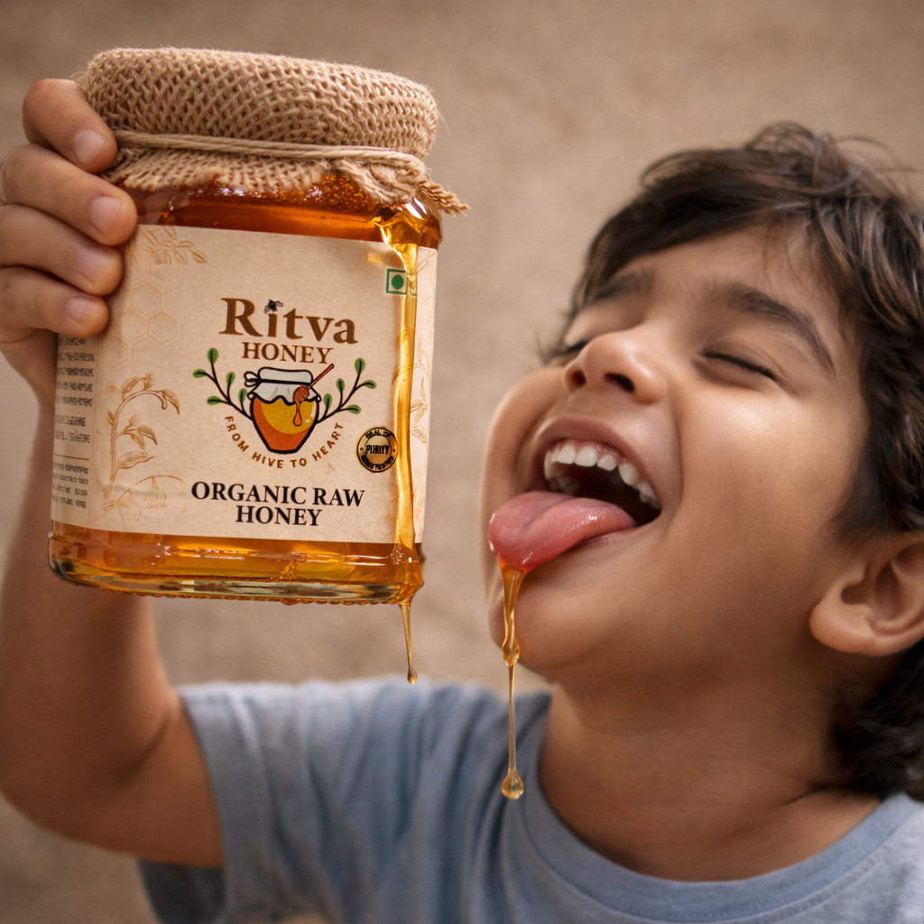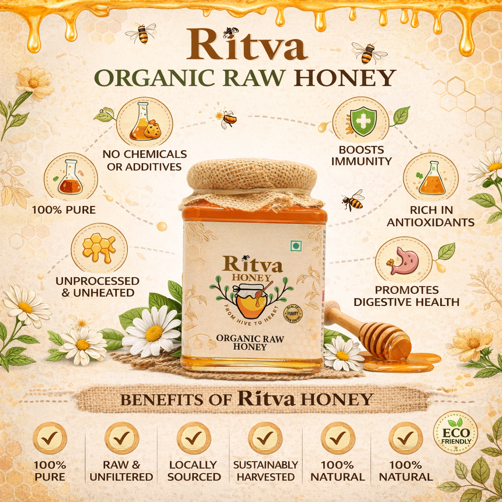 Experience purity in every drop with Ritva Organic Raw Honey — carefully sourced from natural hives and packed without compromising its nutrients. This honey is unprocessed, unheated, and free from chemicals, ensuring you get nature’s goodness exactly as bees intended. With its rich aroma, smooth texture, and golden glow, Ritva Honey is not just a sweetener, but a daily wellness companion.