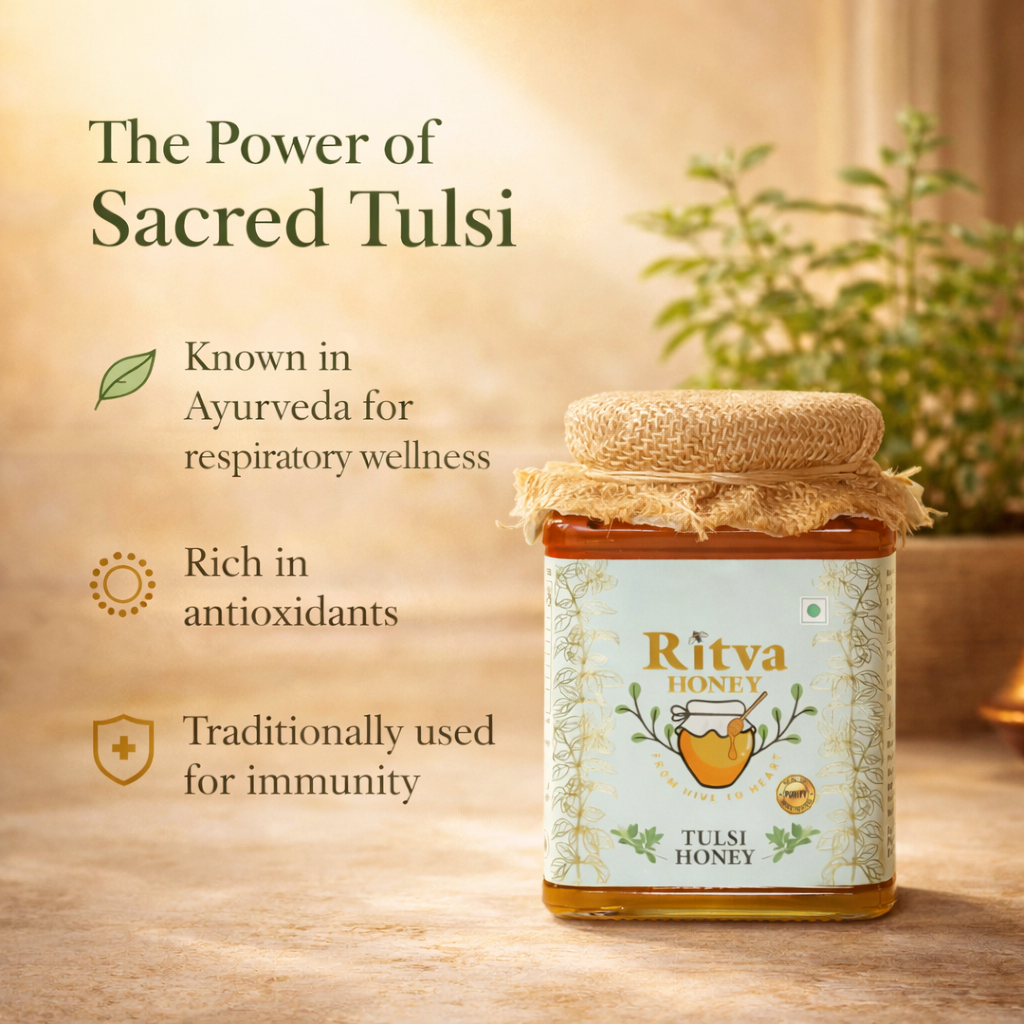 Experience the healing power of Ritva Tulsi Honey – pure, raw, and unprocessed. Enriched with the goodness of Tulsi, it boosts immunity, relieves cough and cold, and supports overall wellness naturally.